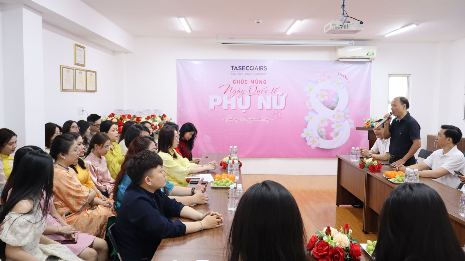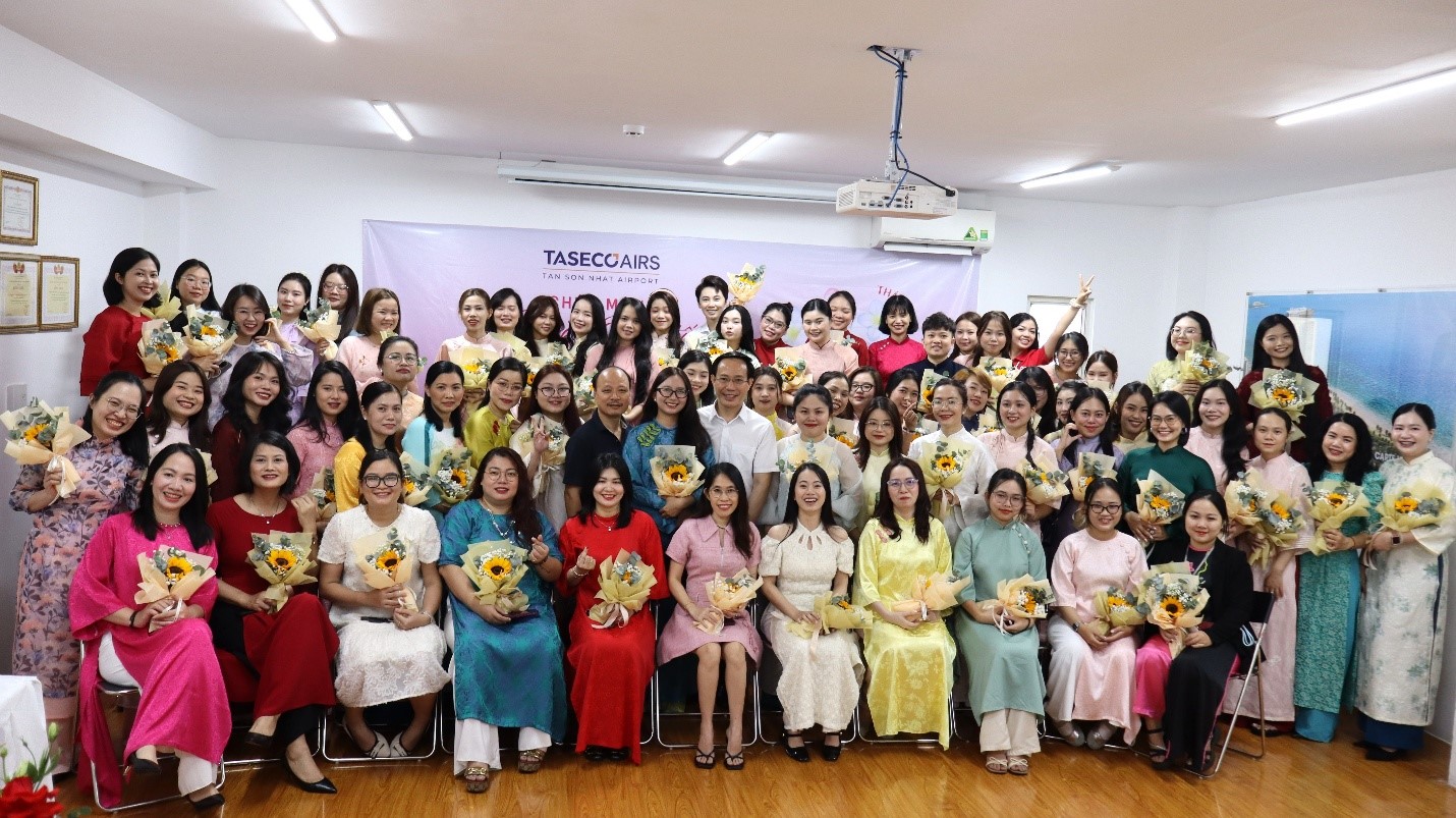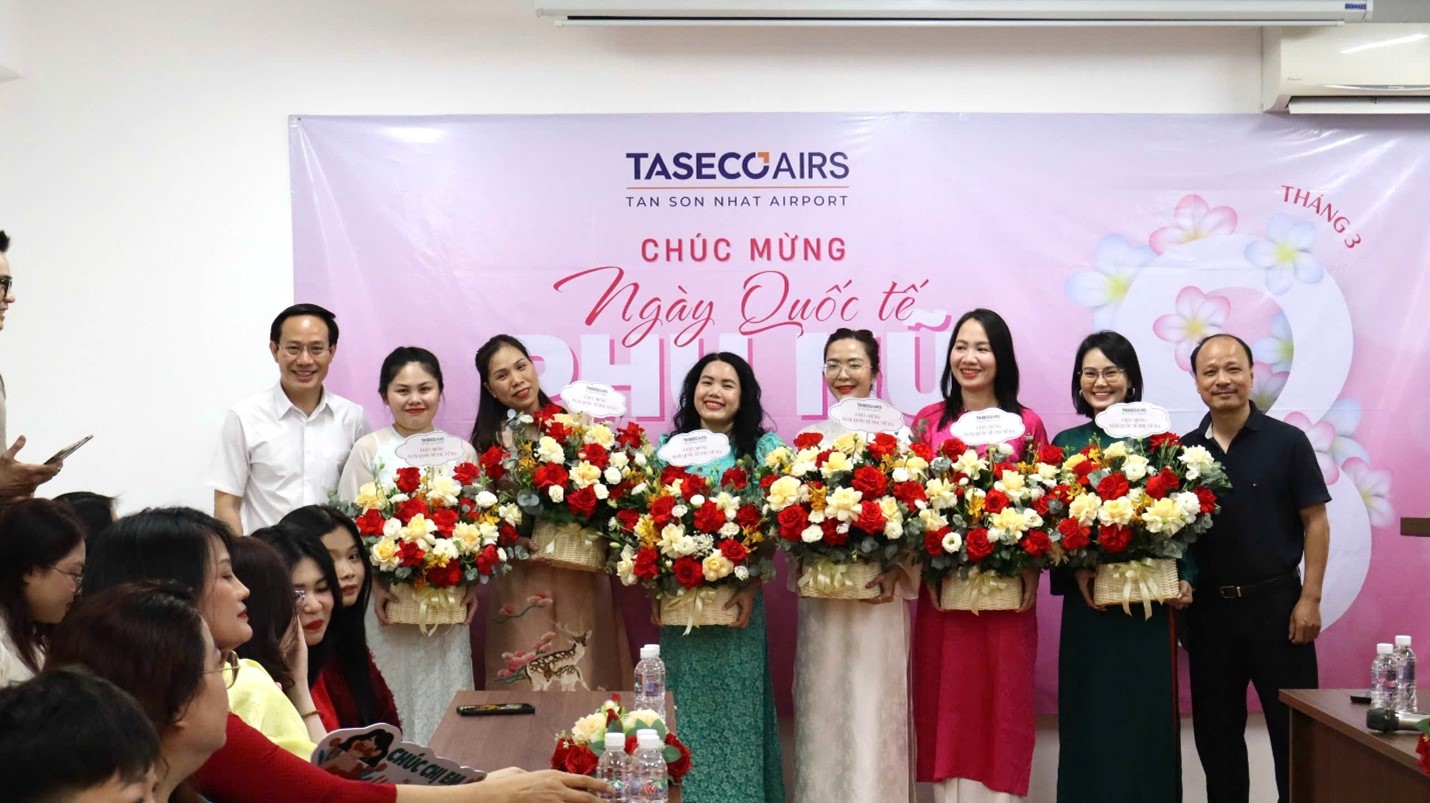 Nhân dịp 8/3, kỷ niệm 111 năm Ngày Quốc tế Phụ nữ, Công ty Cổ phần Dịch vụ Hàng không Taseco Sài Gòn đã tổ chức chương trình chúc mừng dành cho toàn thể nữ cán bộ nhân viên. Chương trình diễn ra trong không khí đầm ấm và thân mật với sự tham dự của Ban Lãnh đạo cùng đại diện các phòng ban và đại diện nữ cán bộ nhân viên đến từ Trung tâm Kinh doanh.