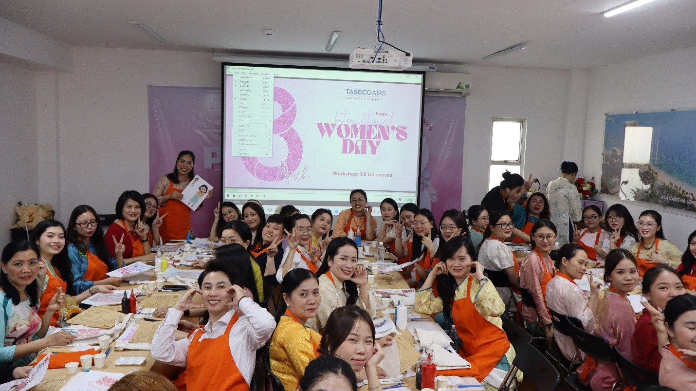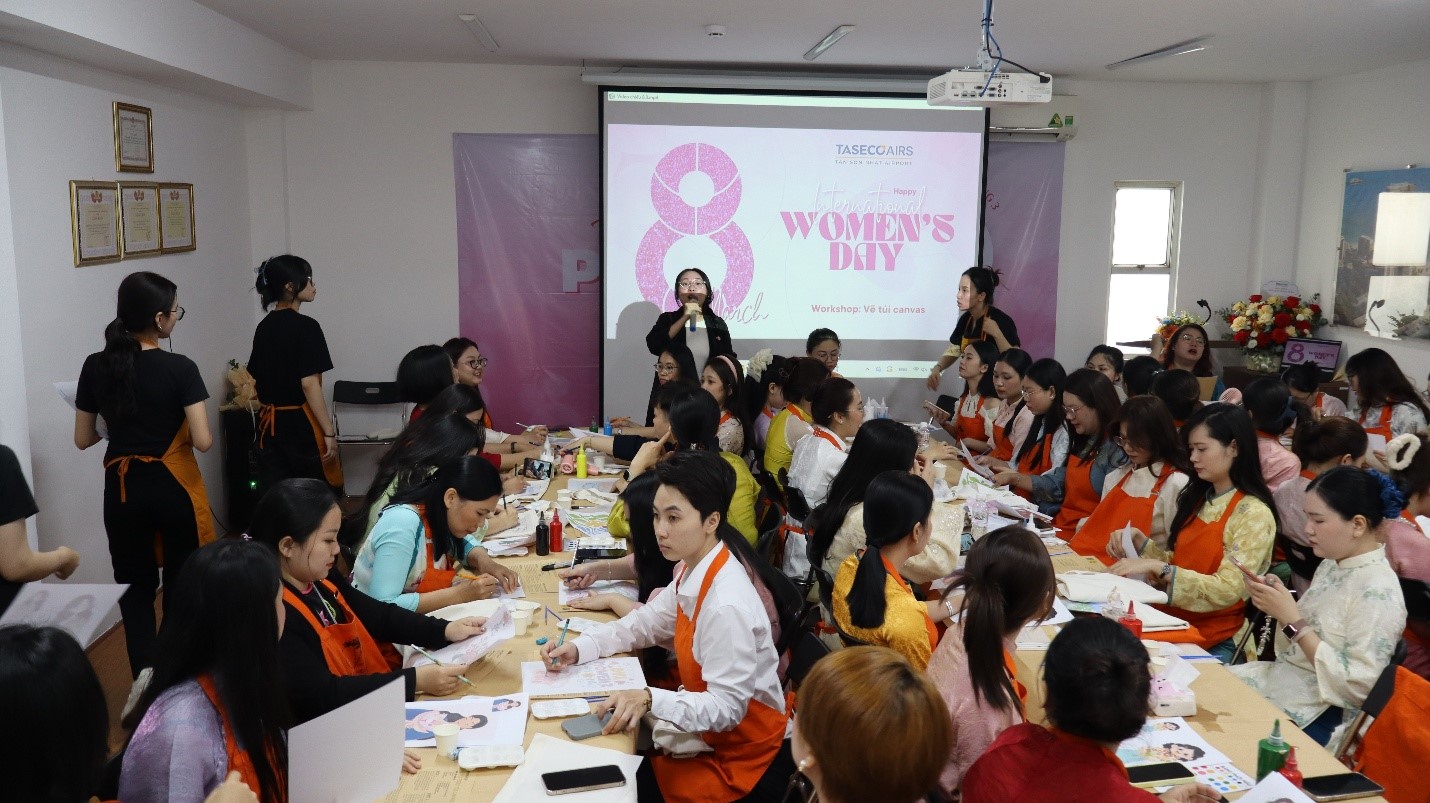 Nằm trong chương trình, Taseco Sài Gòn tổ chức “Workshop vẽ tranh trên túi canvas” dành cho các chị em CBNV. Tại chương trình, dưới sự hướng dẫn của đội ngũ nhà thiết kế và hướng dẫn chuyên nghiệp, các chị em đã được tự tay sáng tạo những chiếc túi canvas mang dấu ấn cá nhân thể hiện sở thích, niềm tin, ước nguyện… của mình.