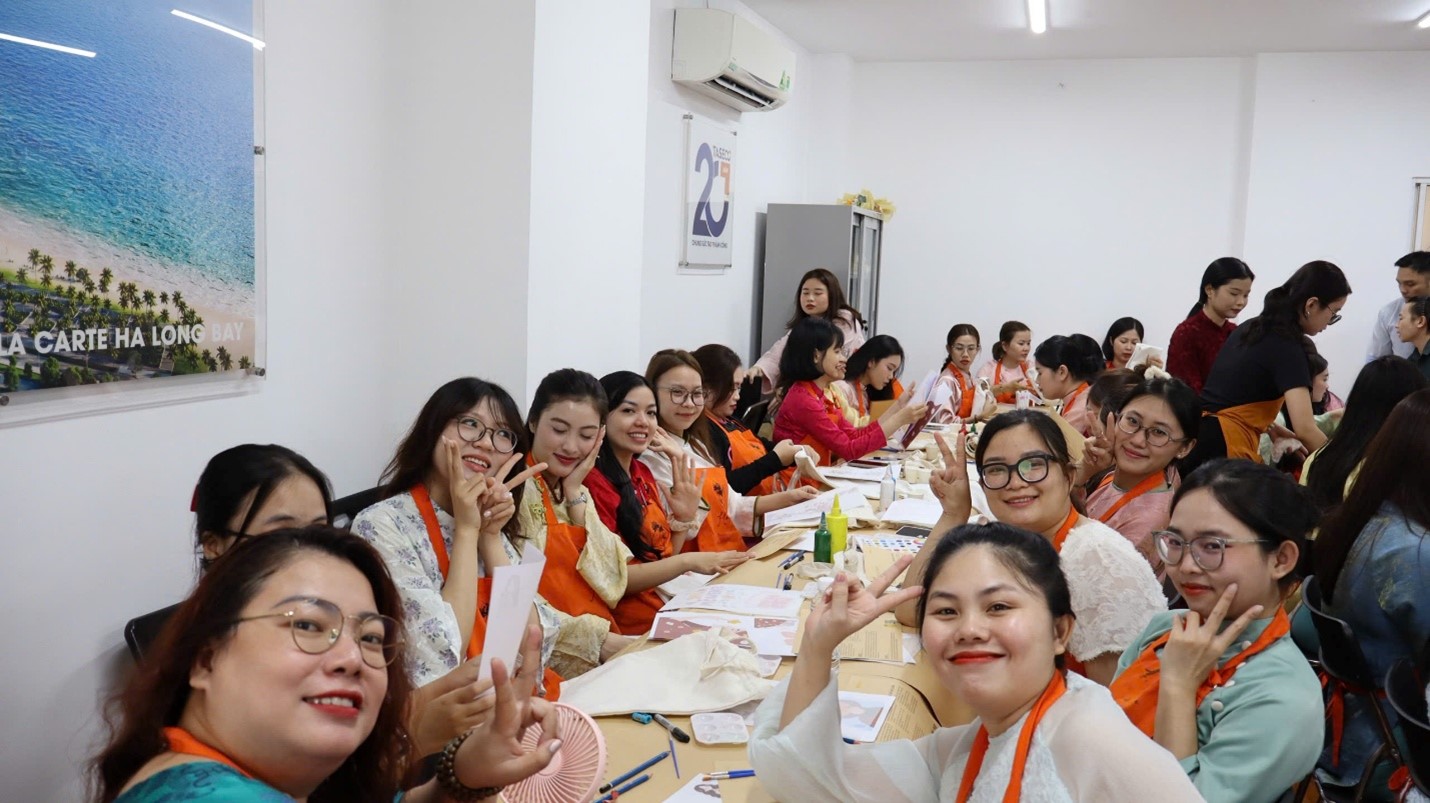 Đây là hoạt động trải nghiệm thú vị ngay tại Hội trường trụ sở Công ty, góp phần khơi gợi sự sáng tạo và mang lại những giây phút thư giãn sau giờ làm việc. Taseco Sài Gòn hy vọng những chiếc túi canvas do mỗi người tự tay hoàn thiện, cùng những lời chúc chân thành từ tập thể nam CBNV trong ngày lễ, sẽ trở thành món quà tinh thần ý nghĩa gửi tới toàn thể các chị em đã và đang đồng hành cùng Công ty.